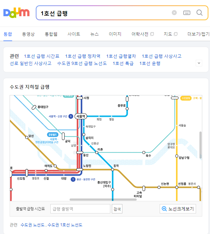 다음이나 네이버에 1호선 급행 등 관련 키워드를 검색하면 바로 조회 가능합니다.