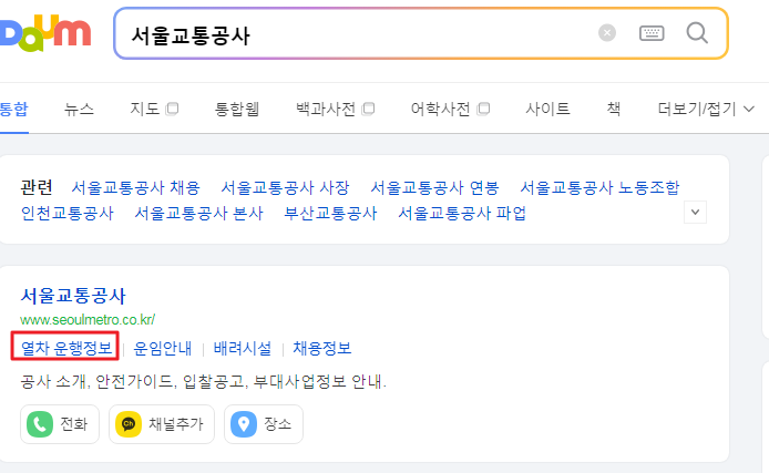 서울교통공사 사이버스테이션에서 1호선 급행 정차역 시간표 바로 보기가 가능합니다. 서울교통공사를 검색해서 열차 운행정보를 클릭합니다.